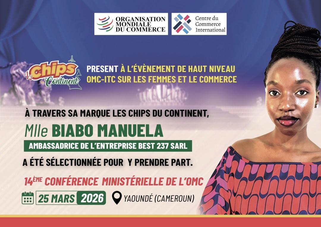 Mademoiselle Manuella, Ambassadrice de Best Sarl a été sélectionné pour prendre part à la 14e conférence ministérielle de l’OMC le 25 Mars 2026 à Yaoundé.